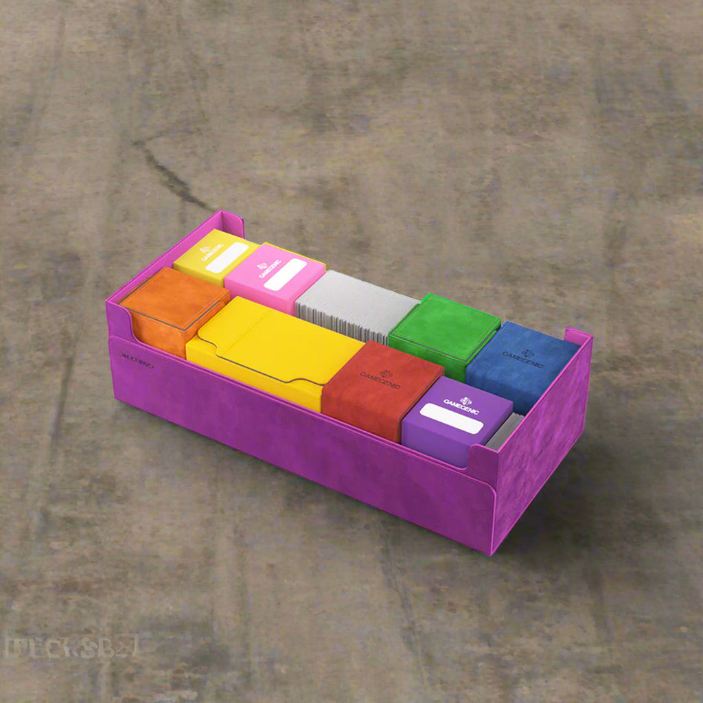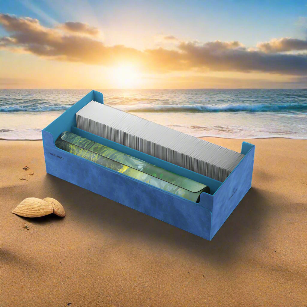 The Dungeon can store a whole card collection, including deck boxes, playmats, and accessories, plus a large amount of individual cards (even with larger top loader sleeves). Its unique design ensures the box stays securely closed, even when filled to the brim. The premium Nexofyber+ exterior gives off the same classy vibe as the rest of the Convertible line, and is compatible with other popular boxes on the market. This box is truly a versatile and stylish choice for any card collector.